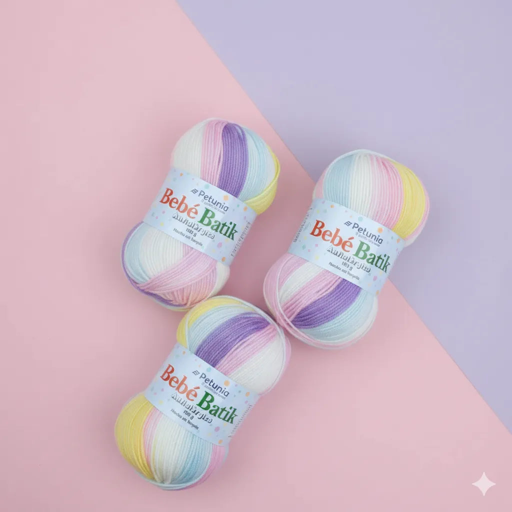 Pack Bebé Batik de Petunia – 100% Acrílico Premium, Suave e Hipoalergénico